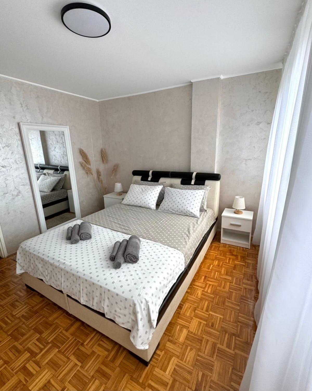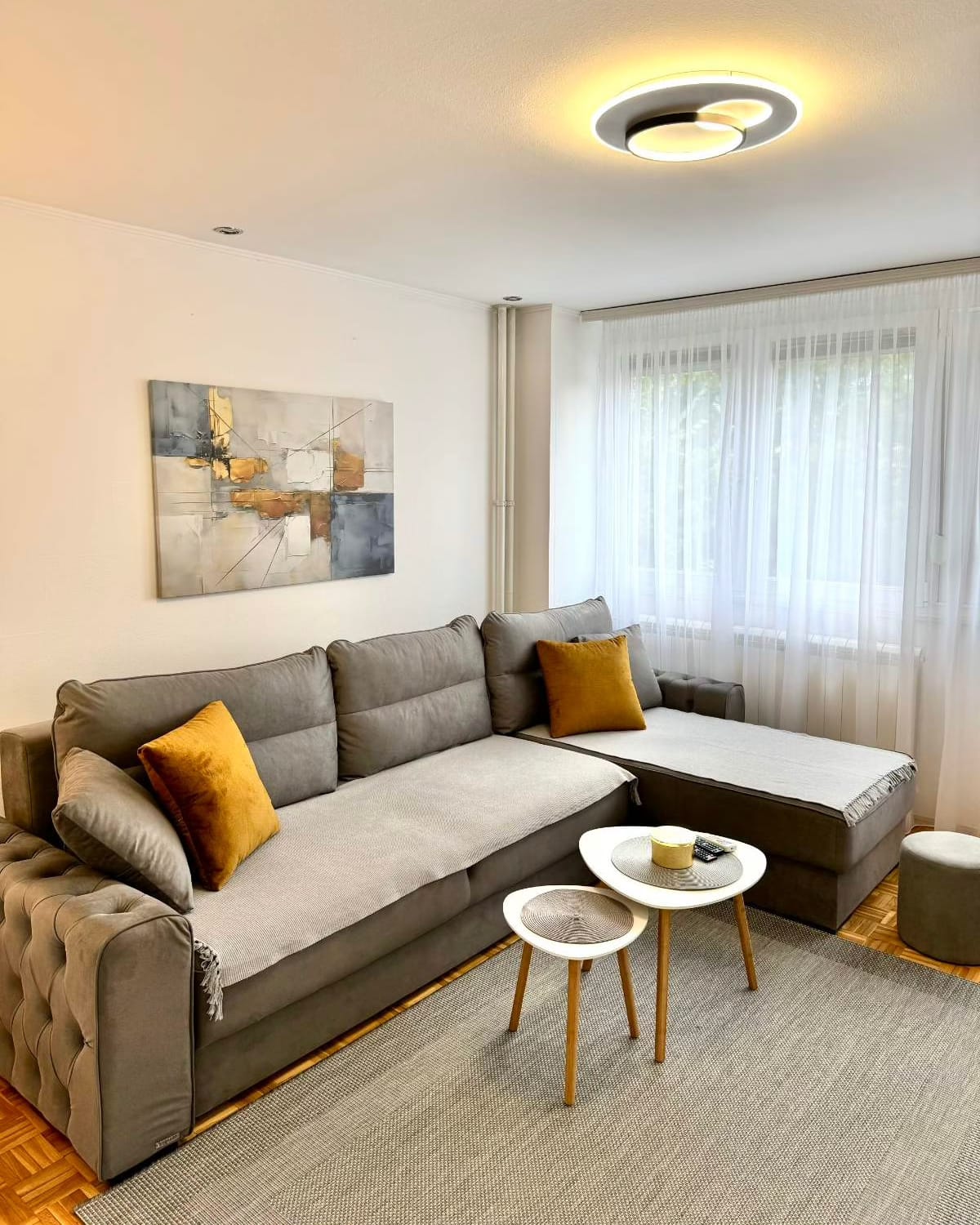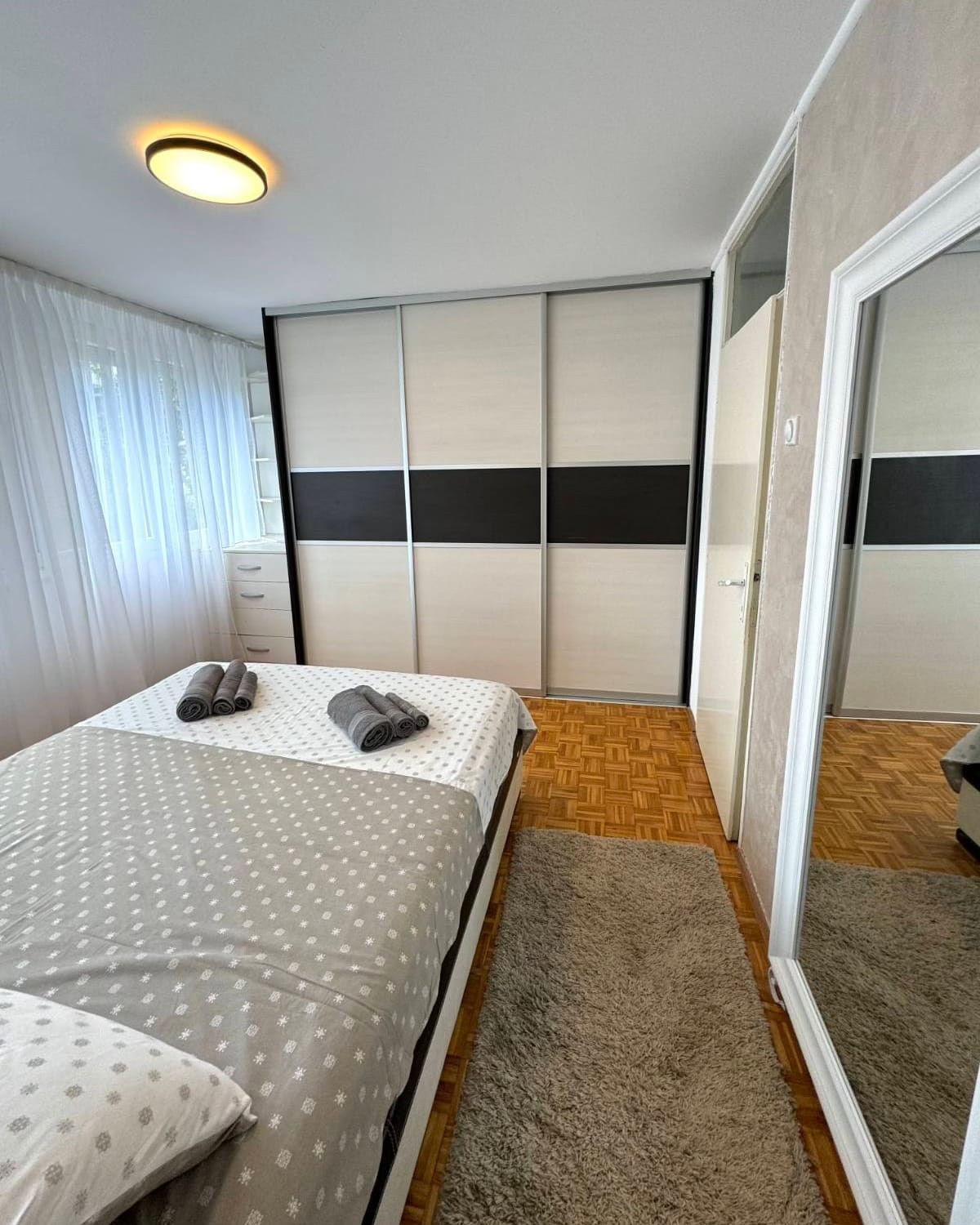 Sastoji se od dnevnog boravka sa ugaonom garniturom, spavaće sobe sa bračnim krevetom i američkim plakarima,